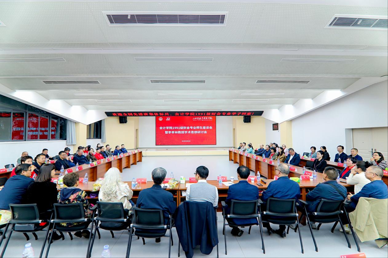 李孝林教授是1991级财会专业的任课教师,他学识渊博、治学严谨、关爱学生,深受学生崇敬。在同学们毕业30年回到母校之际,大家追忆李孝林教授的育人风范、研讨他的学术思想。在座师生围绕李孝林教授学术思想、学术贡献、育人理念、无私奉献的大爱精神等方面分享了恩师的治学历程及其对中国会计史的卓越贡献。