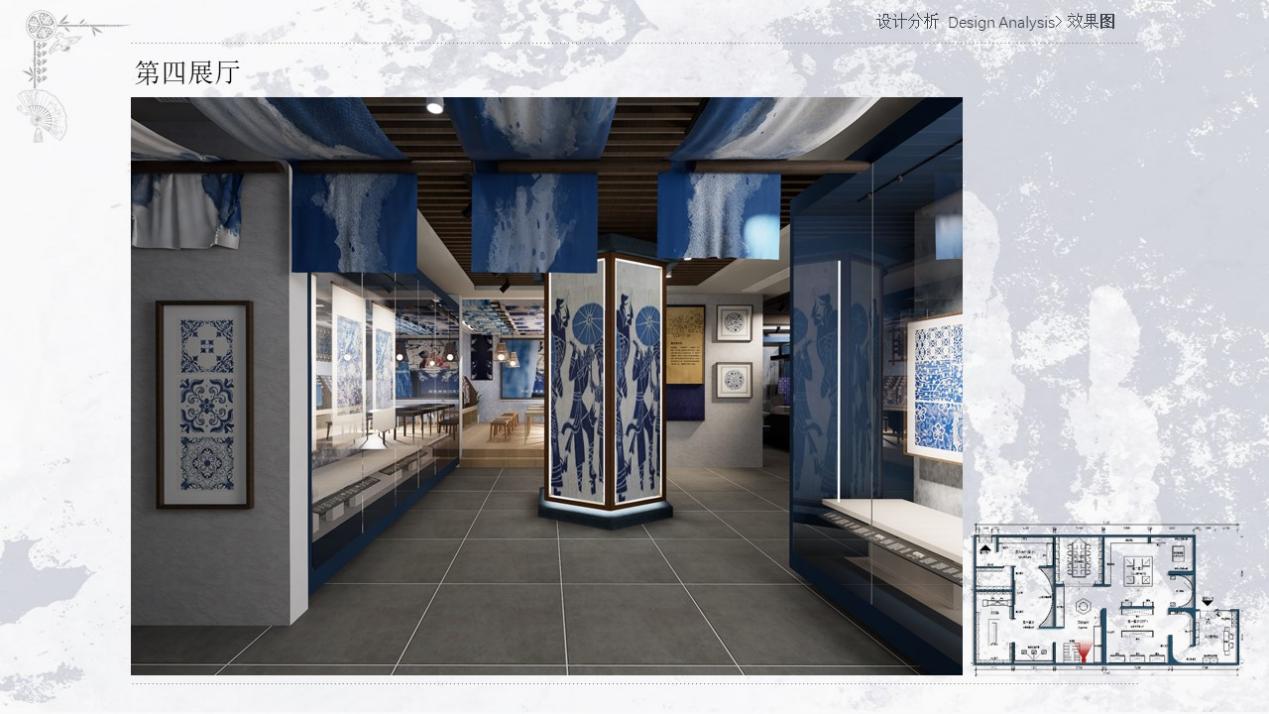 设计理念:党的二十大三中全会报告中强调全面推进乡村振兴,为贯彻习近平新时代中国特色社会主义思想,响应乡村振兴战略,将非物质文化遗产与乡村发展紧密结合,保护和传承中华优秀传统文化,为乡村经济社会发展注入新的动力,以此为宗旨设计此展厅。本项目选址于贵州省铜仁市松桃苗族自治县,此展厅类型是苗族蜡染数字艺术展厅,以松桃工艺蜡染为主题,展示了松桃蜡染这一独特的地域文化艺术形式。展厅融入蜡染作品中常用的蓝白主色调,搭配苗族文化中富有代表性的鲜艳色彩,引入AI/VR等数字技术手段,营造出既时尚又富有民族特色的空间氛围。