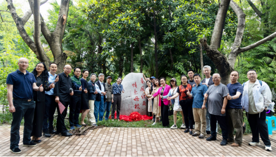 捐赠仪式上,孟妍、唐玺与92级装潢班校友代表王强、曾俊共同为校友捐赠的“母子石”揭幕,该石安放于兰花湖片区崇德楼门口道路左侧的草地上,正朝东方,石上篆刻“春风化雨 情系母校”八个大字。拳拳赤子心,依依校友情,这八个大字不仅饱含着92级装潢班校友对学校培养的感恩之情,更生动诠释了艺术学院校友们关心母校发展、倾心反哺母校的真挚情怀。