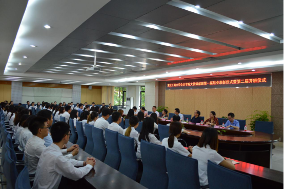 2017年6月30日15:00,会计学院大信谛威班第一届结业表彰暨第二届开班仪式议程在厚德楼2017会议室成功举办。出席本次活动的嘉宾有:大信谛威首席合伙人张辅辙、大信重庆分所所长刘先利、人力资源部副经理余斯娟、培训部副经理刘春梅、人事部周凤。我院到场的领导有:会计学院党委书记罗惠玉、副书记尹建平、副院长程文莉、党政办主任郭敏以及学团办主任刘斌。除此之外,大信谛威班2015-2016年在职校友20人,以及大信谛威班第二届学员50名学员也参加了此次活动。