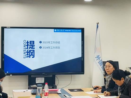外国语学院院长周琳作了2023年学院工作报告。报告指出,2023年,学院坚持以习近平新时代中国特色社会主义思想为指导,全面贯彻党的二十大精神,在学校党委行政领导下,认真抓好主题教育和巡察整改任务落实,在全面从严治党、学科建设、人才培养、国际合作与交流等方面取得了较好成绩;但还存在人才短缺、职称结构不合理,高水平科研成果产出不足等问题。报告还对学院2024年工作提出了初步设想。