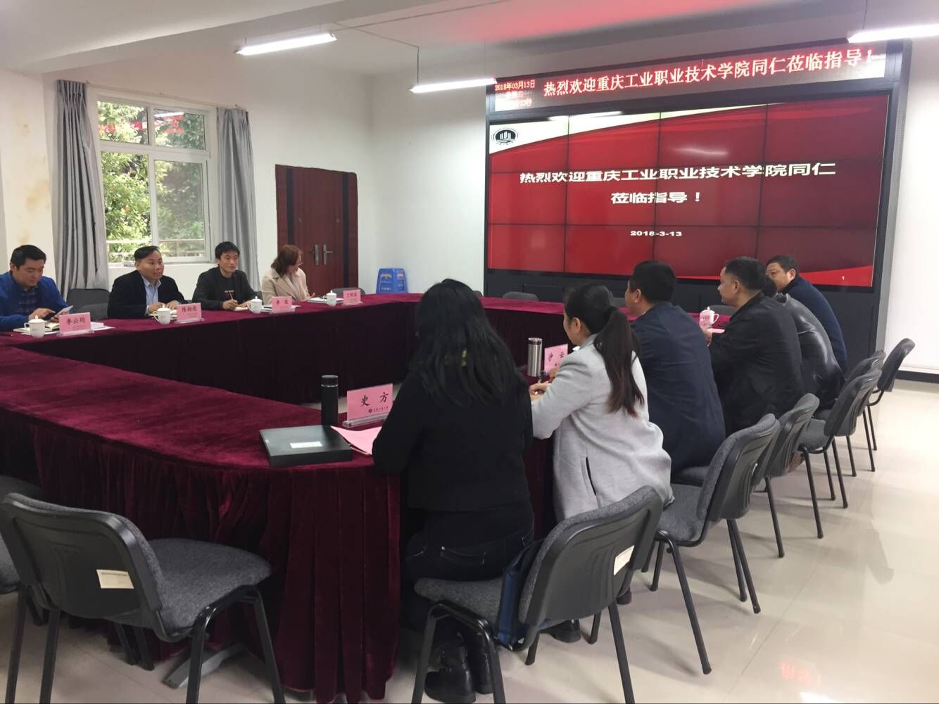 3月13日上午,重庆工业职业技术学院基建后勤处副处长陈相亮、生活科负责人李云均、综合科负责人李俊、生活科食堂管理员丁照容来我校后勤处调研交流。我校后勤处处长沙云、副处长朱富生、综合科杨梅、能源与修缮中心黄香建、饮管中心尤庆华、交通中心史方参加了交流会。