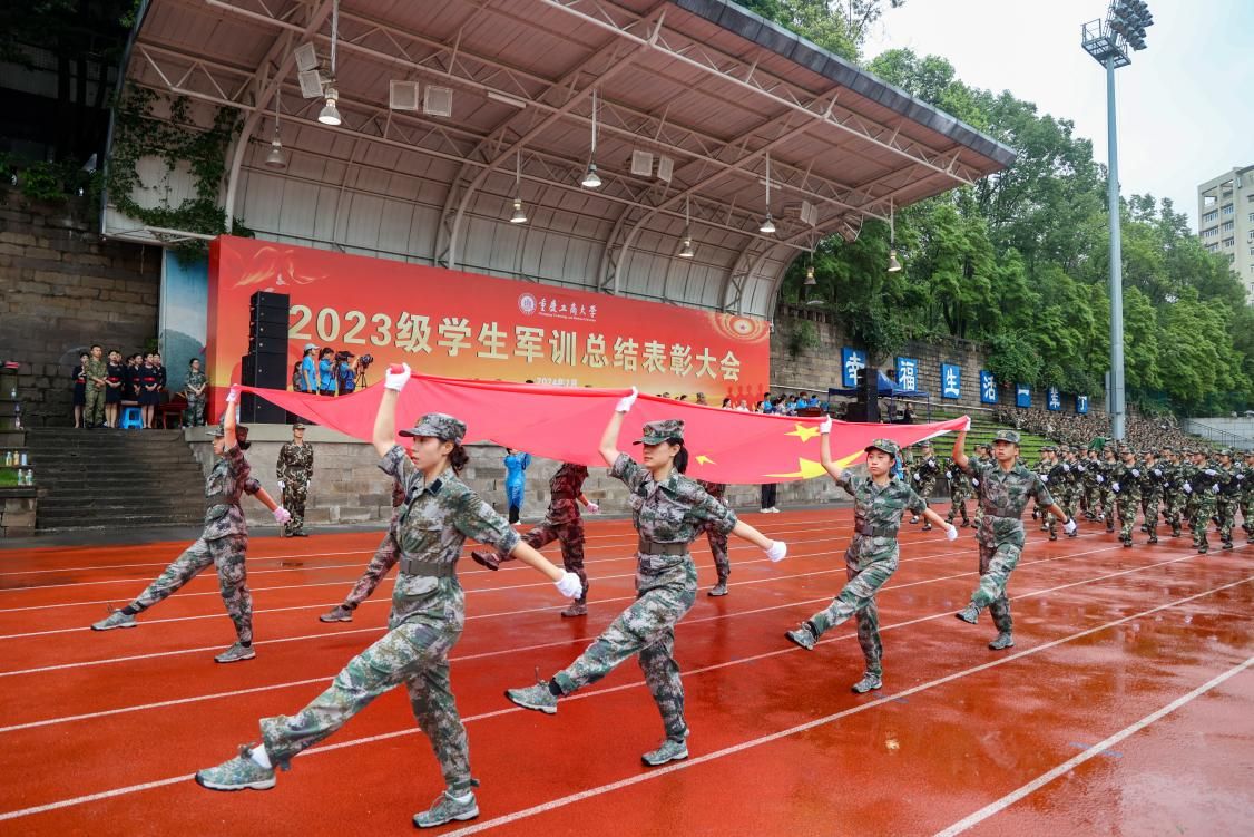 当前位置: 首页 >> 国防教育 >> 正文 我校隆重举行2023级学生军训总结表彰大会 时间:2024年07月14日 19:03 作者: 陈洁 刘红 马诗蕊 孙思怡 7月14日上午,我校2023级学生军训总结表彰大会在南岸校区运动场隆重举行。学校党委常委、副校长张波、李国军、李敬,党委常委、纪委书记、监察专员张海燕,承训单位负责人出席大会。大会由李国军主持。 在庄严的国歌声中,鲜艳的五星红旗冉冉升起,军训总结表彰大会正式拉开帷幕。大会由成果汇报和总结表彰两部分组成。 在成果汇报环节,伴随着雄壮的进行曲,国旗护卫队带领十六个方阵,相继正步走过主席台。他们步伐稳健整齐,摆臂刚劲有力,口号豪迈嘹亮。经过14天的军训,2023级学生们聚成一个个钢铁集体,他们精神饱满,斗志昂扬,意气风发地展示训练成果,昂扬青春的朝气。 精彩的汇报展示紧随其后。格斗术方阵,动作迅猛如虎,每一次出击都展示出军训学子蓬勃朝气;捕俘刀方阵,“匕首出鞘” 崭露锋芒,刀起是飒爽,刀落是坚定,运动场上的他们意气风发、虎虎生威;队列操方阵,队形变换自如,整齐划一,个个都是精神饱满、昂首挺胸、气宇轩昂;应急棍术方阵,棍影翻飞、动作连贯,彰显我校学子的蓬勃朝气和昂扬锐气;军体拳方阵,出拳刚劲有力,踢腿虎虎生风,一招一式饱含豪情壮志;战术展示方阵,钢枪在手,威风赫赫,动作干脆利落,每一步的踏出都赢得了现场欢呼掌声一片;刺杀操方阵,呐喊声中透露出坚定,每一次挥刀都精准有力,动静之间,尽显军人敢打敢拼的战斗作风。 军训成果验收结束后,大会进入表彰环节。张海燕宣读了表彰军训先进集体、优秀个人的决定。与会领导为先进集体和优秀个人代表颁奖。 李敬代表学校向承训单位赠送锦旗。 军训学员代表、机械工程学院2023级本科生徐志科发言。他回顾了过去两周的军训生活,对教官和老师的辛勤付出表示衷心的感谢和崇高的敬意,并分享了自己的成长和感悟。他表示,军训不仅锻炼了身体素质,还磨砺了意志品质。今后,大家将把军训中学到的纪律性、团队精神以及坚持与忍耐的品质融入未来的学习中,并将个人的成长与国家的发展紧密结合起来,为实现中华民族伟大复兴贡献自己的力量。 张波在讲话中向承训部队领导和所有军训教官、带训老师和保障人员所付出的辛劳表示衷心的感谢,向刻苦训练、顽强拼搏的同学们表示亲切的问候,向受到表彰的先进集体和优秀个人表示热烈的祝贺。他谈到,学校历来重视学生军训工作,坚持“塑形”与“塑魂”相结合,将军训作为大学生思想政治教育的重要抓手,践行“为党育人、为国育才”初心使命,落实立德树人根本任务,培养国防后备力量。他指出,大家步伐整齐、口号响亮,充分展示了军训的胜利成果。为期14天的军训,必将成为同学们未来人生道路上奋进新征程、担当新作为的重要动力。他强调,希望同学们继续传承“高标准、严要求”的军训精神,坚持“听党指挥、能打胜仗、作风优良”的军人标准,发扬“与祖国共命运、与时代同奋进”的爱国精神,把人生理想融入国家和民族事业,勇担时代使命,不负青春韶华。 最后,大会在气势磅礴的《强军战歌》中圆满落下帷幕。 学校相关职能部门负责人、全体军训教官、带训老师和2023级全体参训学生参加了此次大会。 上一条:我校学生在2024年重庆市大学生“爱我国防”主题演讲比赛中荣获二等奖 下一条:学校举行新学期升旗仪式 【关闭】